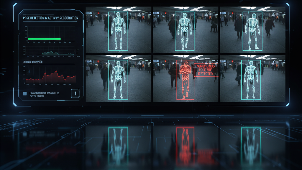 Keypoint and pose annotation is used to map human body positions and movements, marking joints like shoulders, elbows, and knees to understand gestures and posture. This technique helps AI models recognize human behavior patterns—distinguishing between normal and suspicious actions such as running, fighting, or loitering. Pose estimation is especially valuable for crowd management, fall detection, and workplace safety monitoring, where human activity interpretation is key.
