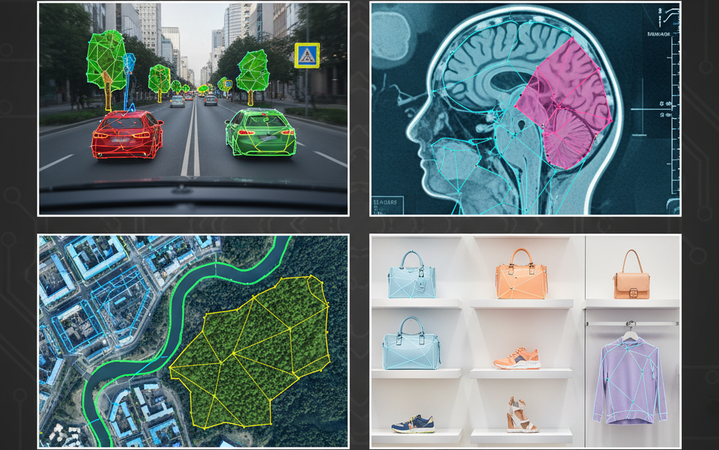 - Autonomous Vehicles: Labeling irregularly shaped vehicles, traffic signs, pedestrians, and obstacles.